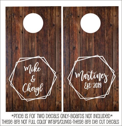 Cornhole Board Decals Set Of Two Decals For Wedding Cornhole Game Modern Hexagon Wedding Decals For Cornhole Boards Vinyl Decal Names Date